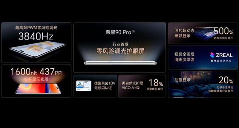 此次發(fā)布會(huì)帶來(lái)了榮耀90和榮耀90 Pro,全系首發(fā)搭載了2億像素寫真相機(jī),以及3840Hz超高頻PWM零風(fēng)險(xiǎn)調(diào)光功能。榮耀終端有限公司 CEO 趙明先生稱,這次的榮耀 90 系列,他們希望在影像(2 億像素寫真相機(jī))、屏幕(3840Hz 超高頻 PWM 零風(fēng)險(xiǎn)調(diào)光護(hù)眼屏)、續(xù)航(5000mAh 高密度超大容量電池)這三個(gè)領(lǐng)域有所突破。